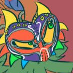 Semi non-verbal, talks using emotes or Q*bertese English in text, others provide translations in case of latter